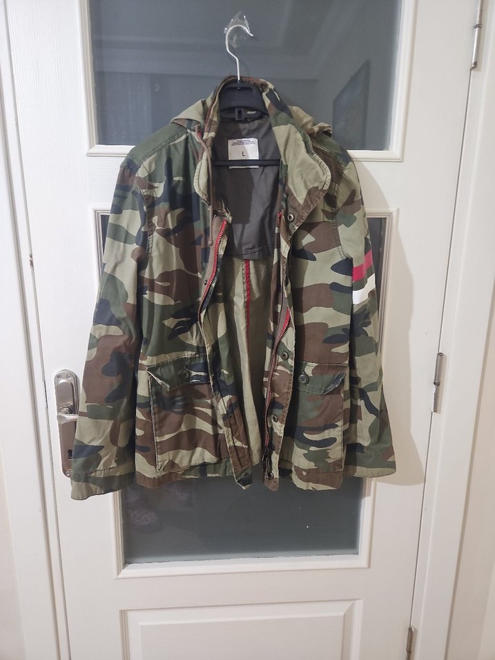 Kamuflaj desenli, bol kesim kadın yağmurluk. Uzun kollu, kemerli ve sentetik kumaştan üretilmiştir. Dış mekan ve sokak stiline uygundur. ️