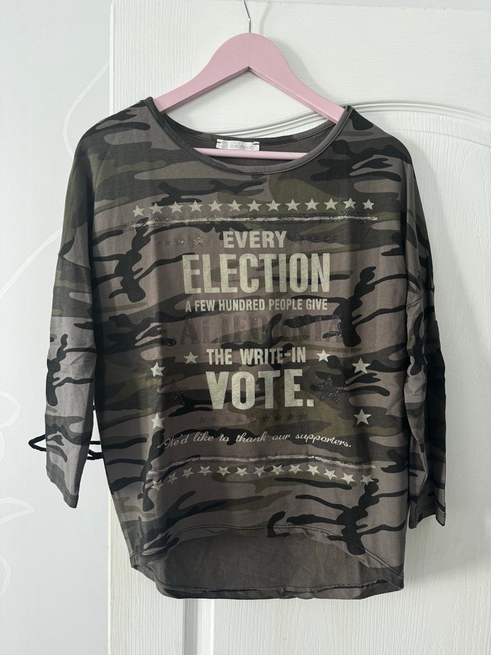 Pamuklu, kamuflaj desenli, uzun kollu, bol kesim kadın sweatshirt. Önünde motivasyonel baskı yazısı bulunur. Günlük kullanıma uygundur. ✨