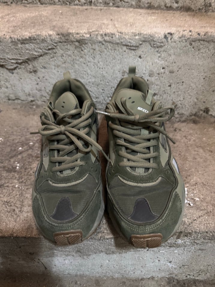Kamuflaj desenli, kahverengi ve gri tonlarında, dolgu topuklu ve bağcıklı kadın spor ayakkabısı, rahat sokak stili için uygundur.