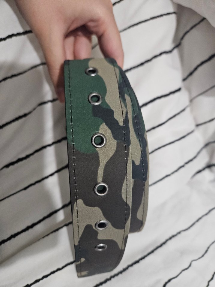 Kamuflaj desenli kadın kemer. Hiç kullanılmadı. Sorunsuz. Kotondan aldım galiba
