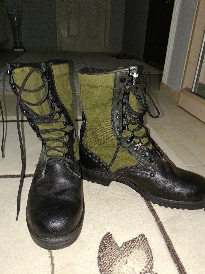 Koyu haki kamuflaj desenli, kauçuk malzemeden kemerli erkek botlarıdır. Günlük kullanıma uygun, sert karşı kültür tarzındadır.