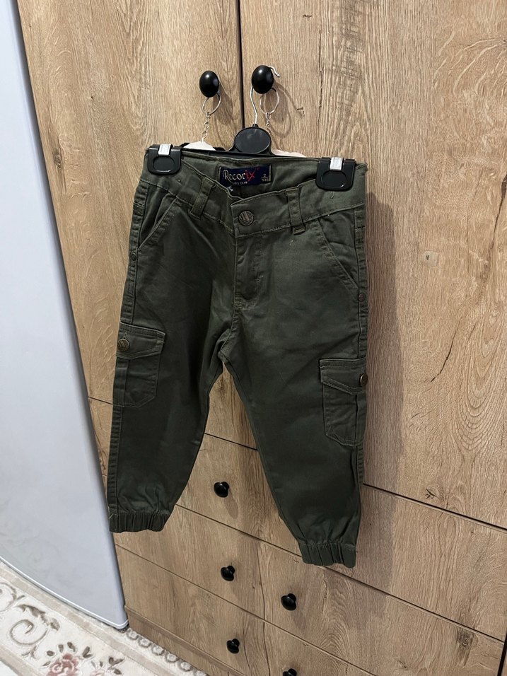 Pamuklu kumaştan, kamuflaj desenli, kemerli ve bol kesim erkek çocuk pantolonu. Elastik paça detayıyla sokak stiline uygun.
