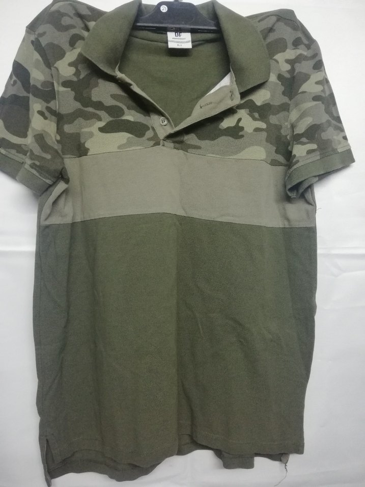 Erkekler için kısa kollu, yakalı ve bol kesim polo tişört. Kamuflaj desenli, kemerli ve sentetik kumaştan üretilmiştir, günlük kullanıma uygundur.