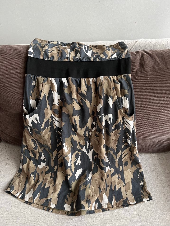 Kamuflaj desenli, kemerli ve cepli, midi boyda ve bol kesimdir. Yumuşak sentetik kumaştan üretilmiştir, rahat dış mekan kullanımı için uygundur.