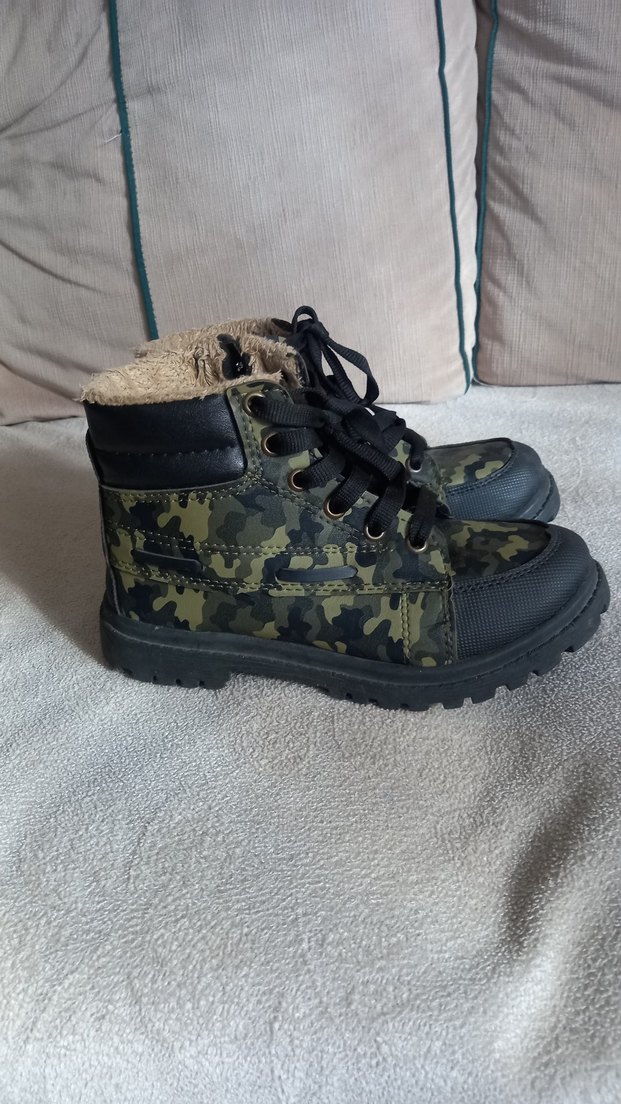 Kahverengi kamuflaj desenli çocuk botu, kauçuk taban ve içi kürklü detaylarla sıcak tutar. Trendy casual sokak tarzına uygundur. 33 no.cok iyi durumda. yırtık sökük soyunma yoktur.