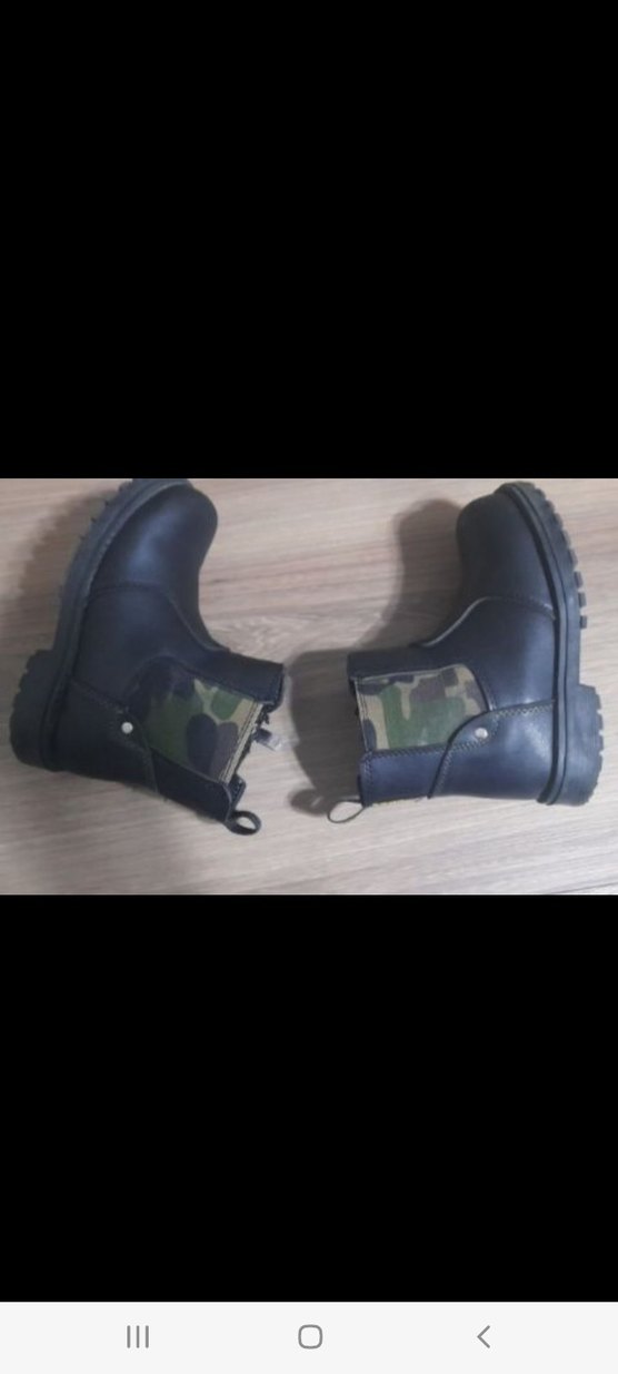 Siyah çocuk botlar, yanlarda kamuflaj desenli detaylıdır. 26 numara fermuarlı hiçbir sorunu yok temiz fotoğraflarda detaylar mevcuttur