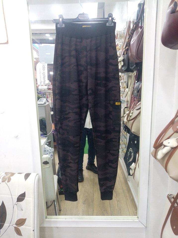 Kamuflaj desenli şalvar kesim lastik paca eşafman sıfır mağaza ürünüdür. S.M.L.Xl bedenler stoktadır.