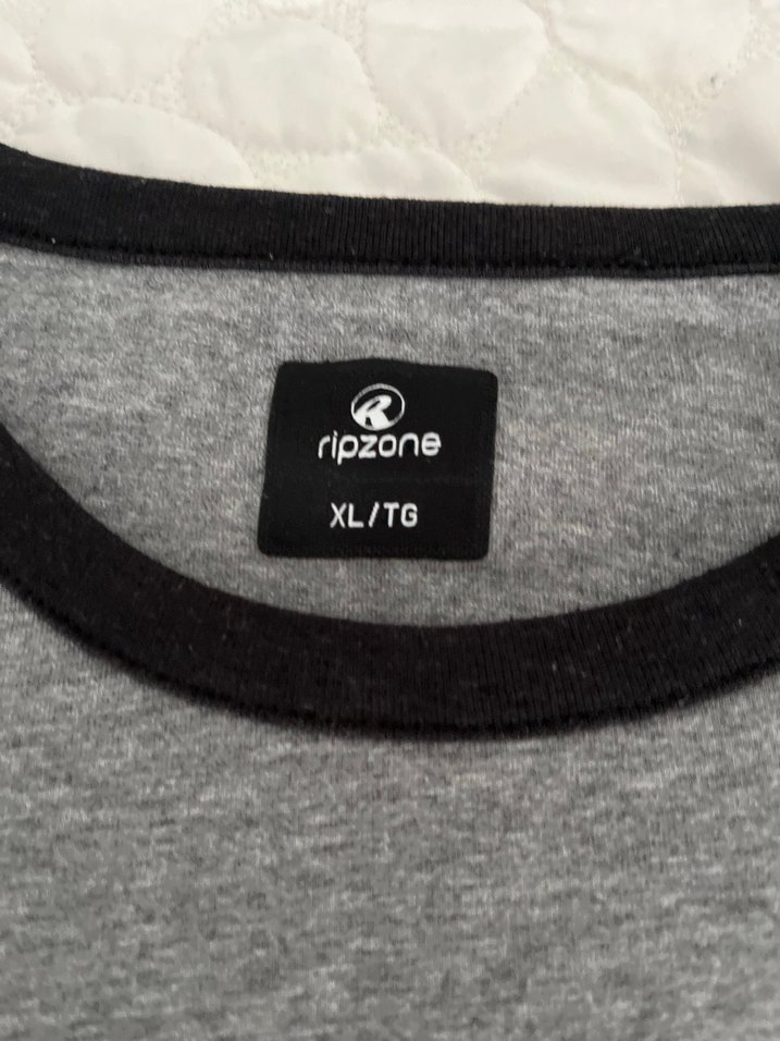 Ripzone markalı, siyah yakalı gri erkek tişörtü XL beden. Sokak modasına uygun, rahat ve trend görünümlü.Koltuk altı 65cm/boy 74cm. XL-XXL bedenlere uygun, çok az kullanılmış.