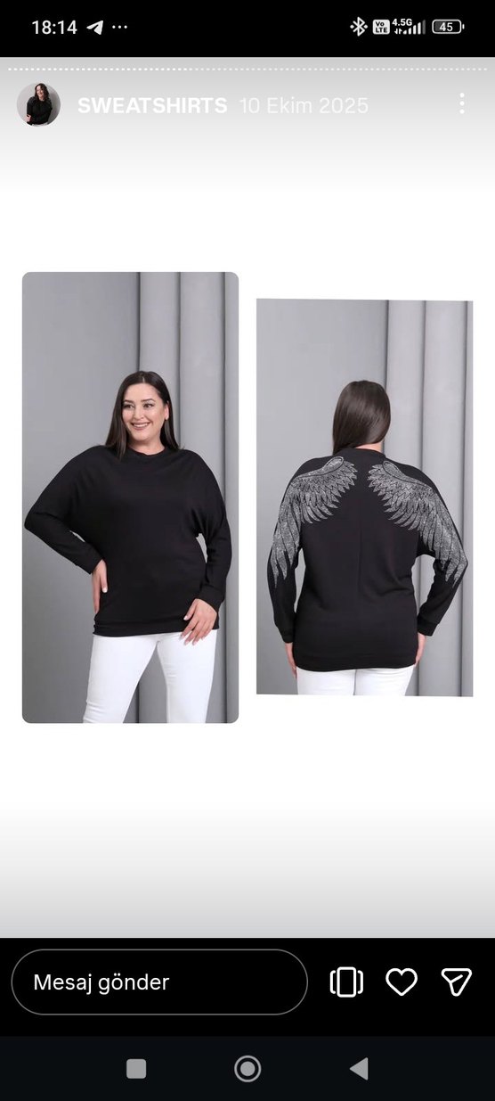 Kanat Desenli Siyah Kadın Sweatshirt