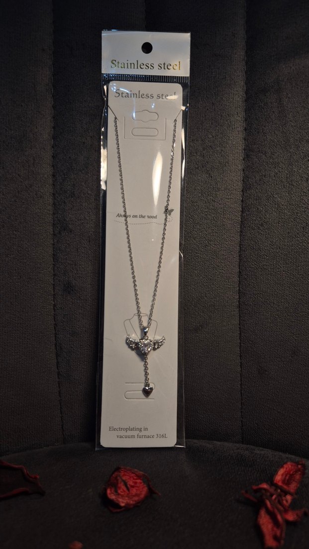 kanatlı kalp desenli kolye