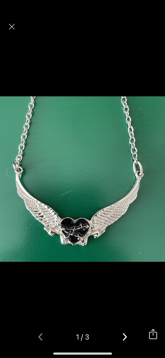 Çelik, zincirli, kanatlı siyah kalp figürlü gotik kolye, romantik akşamlar ve rock punk tarzı için uygun.