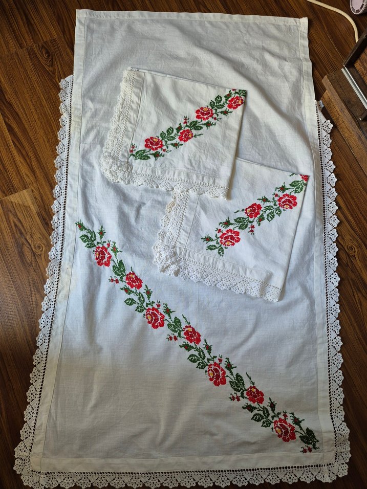 Nakışlı gül desenleri ve dantel kenarlarıyla beyaz masa örtüsü seti, yemek alanınıza klasik bir dokunuş katıyor. ÇOK AMAÇLI ÖRTÜLER