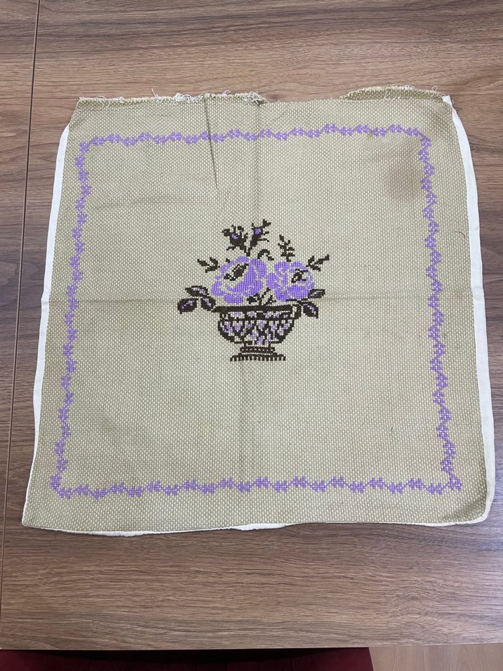 Sandık işi kanaviçe minderlik. Hiç kullanılmadı. Ananemin çeyizinden kalmadır. Kusurları var detaylıca çektim. Sandık lekesi oluşmuş arka kısmında. Ön yüzünü değerlendirmek isteyenler alabilir. Ön kısımda küçük bir ip çekmesi ve minik bir leke var.