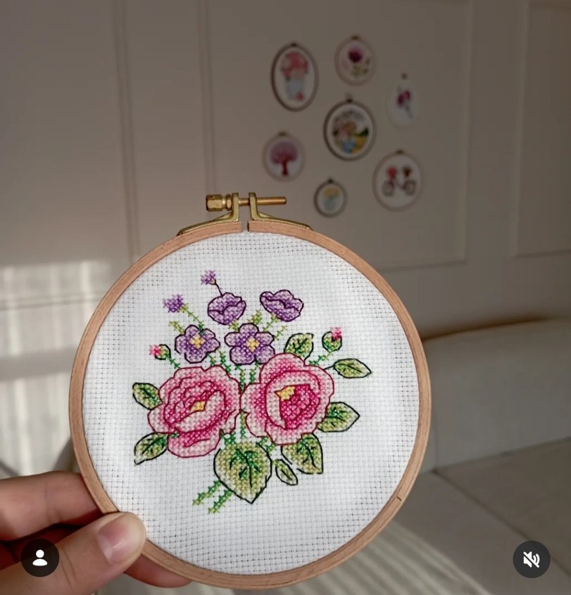 15 cm çapında kavşakta yapılmış kanaviçe duvar dekoru