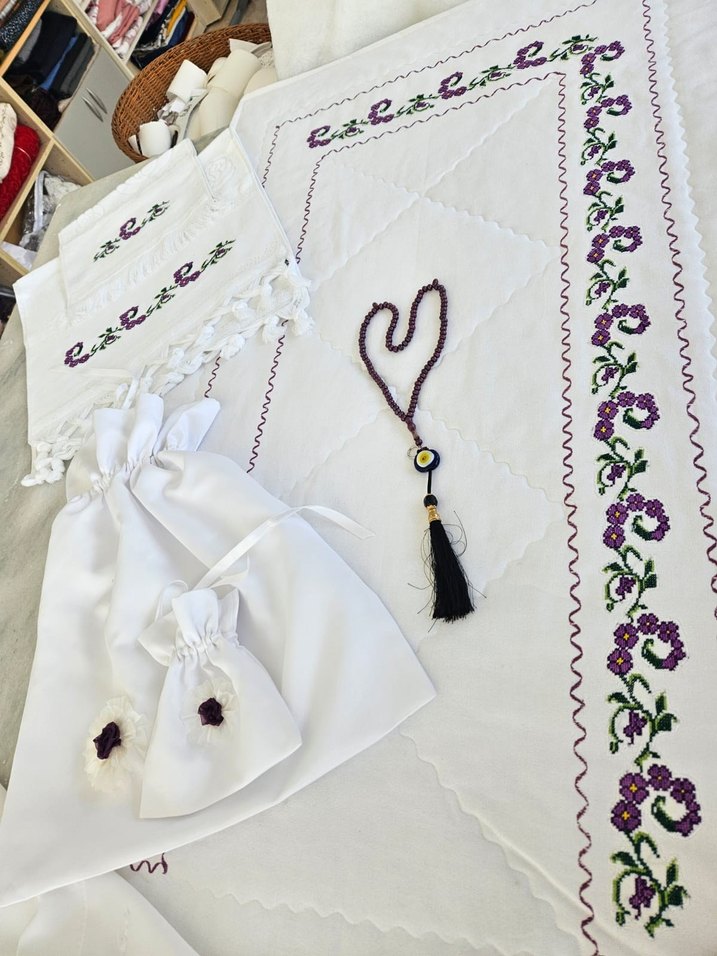 kanaviçe seccade seti gelin damat bohçası