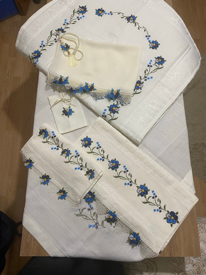 Gelin seti başörtü seccade tesbih tesbih kesesi analı kızlı havlu