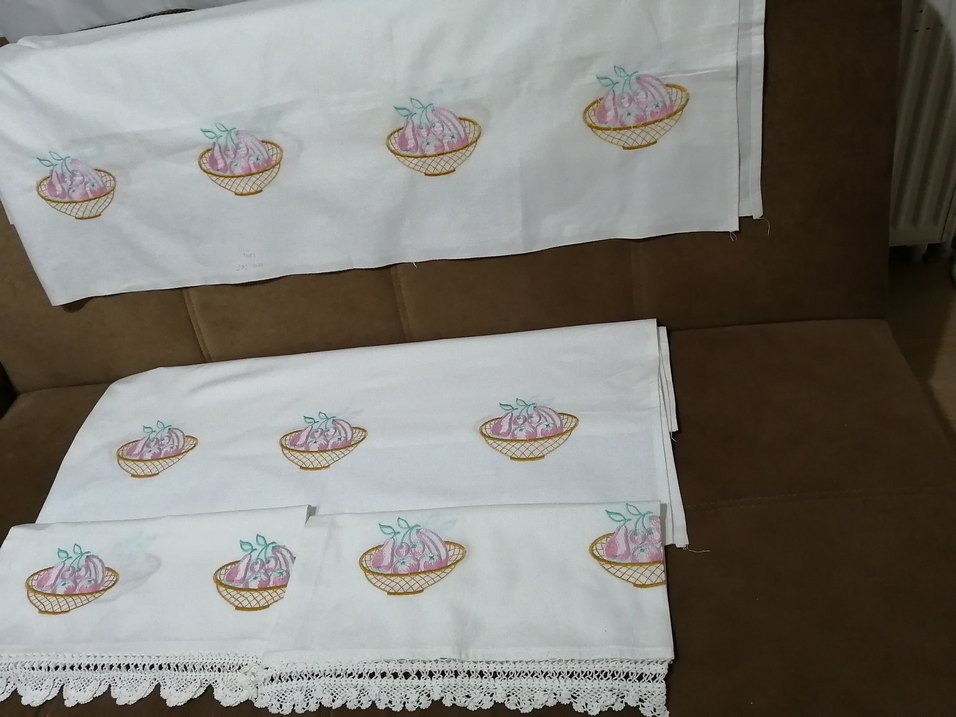 Tasarimliga mutfak perdesi ve masa icin harika rasarimlar yapacaginiz temiz bir takim 2 etek 2 kus yastık seklindedir etekler 2 metre