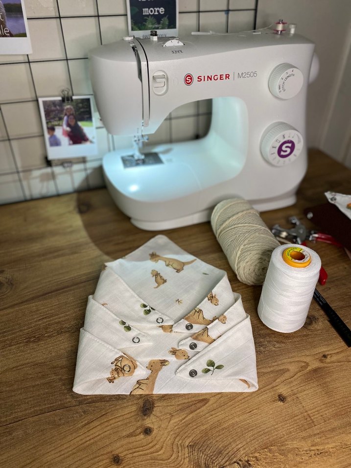 Ürünleri kendim üretiyorum. Özellikle güzel kıyafetlerinin üstüne kusmaması için ve diş çıkarma döneminde ağzı çok aktığı zamanlarda çok kurtarıcı bir ürün. Kendi kızım doğduktan sonra ihtiyaç dahilinde dikmeye karar verdim. 0-3 yaşa kadar oluyor. Müslin kumaştır. Kumaşlarımı ilk aldığım zaman bebek şampuanıyla yıkıyorum. Daha sonra ütüleyip kesiyorum. Dikim aşamasında da iki kere ütülemek durumundayım. Kullanışlı ürünler çokça satılıyor.