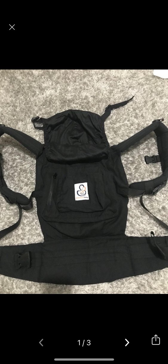 Ayarlanabilir askılı ve destekli siyah bebek taşıyıcı kanguru, rahat taşıma sağlar. Güvenli ve kullanımı kolaydır. Solomombaby sadece 4 saat kullanıldı yeniden farksız
