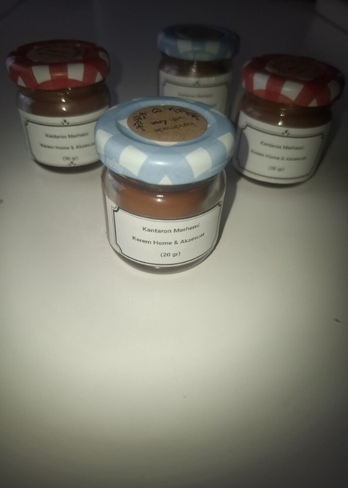 Ev yapimidir. 30 ml dir. Hakiki sarı kantaron çiçeğinin mevsiminde egzoz dumanından uzak bölgelerden toplanarak hakiki zeytinyağı içerisinde maserasyon yöntemiyle üretilen kantaron yagi ile yapılmıştır. Hakiki balmumu kullanılmıştır. Yara, yanık, sinek ısırığı vb. durumlar icin kullanilir. Acil yardım kremi olarak düşünülebilir. Lutfen ilan isteyin.