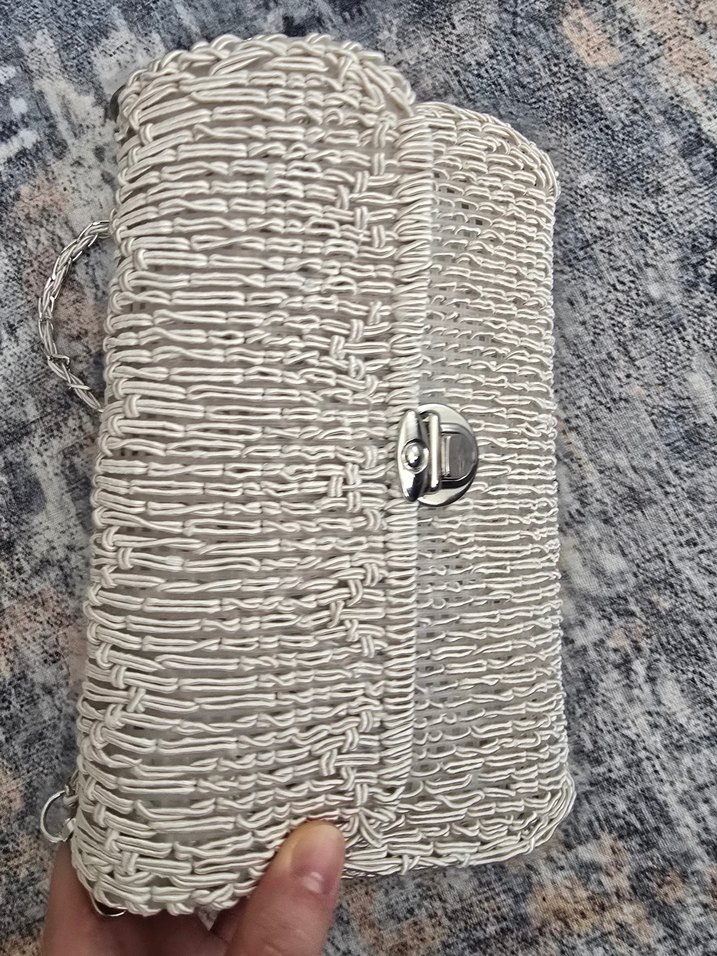 Gri renkli, örgü dokulu, bohem tarzda kadın çantasıdır. Dış mekan kullanımı için uygundur, kilitli kapanışı vardır.