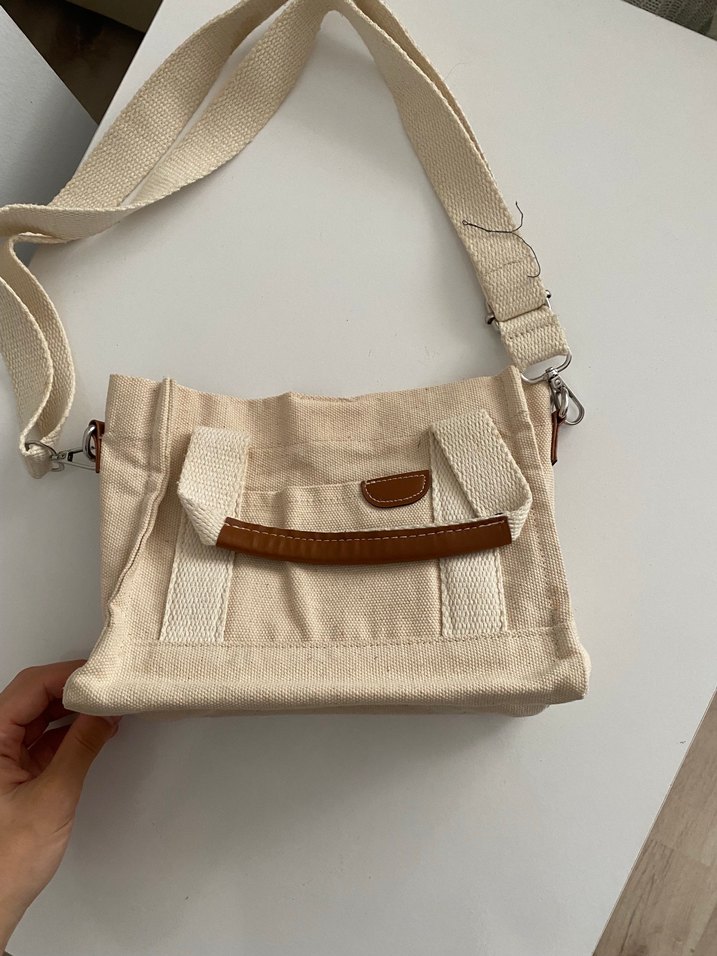 Bej bohem tarzı, kemerli kadın çantası. Kanvas kumaştan, günlük kullanıma uygun bir iki kere kullandım herhangi bir sorunu yok Lc waikiki den aldım
