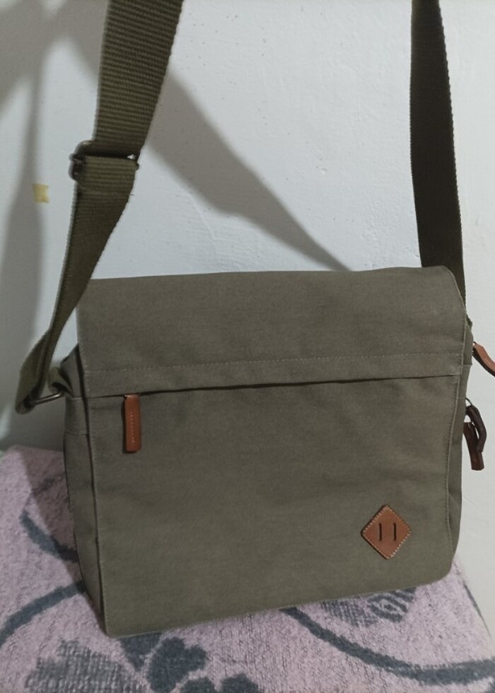 Kanvas Postacı Yatık Çapraz Çanta Haki