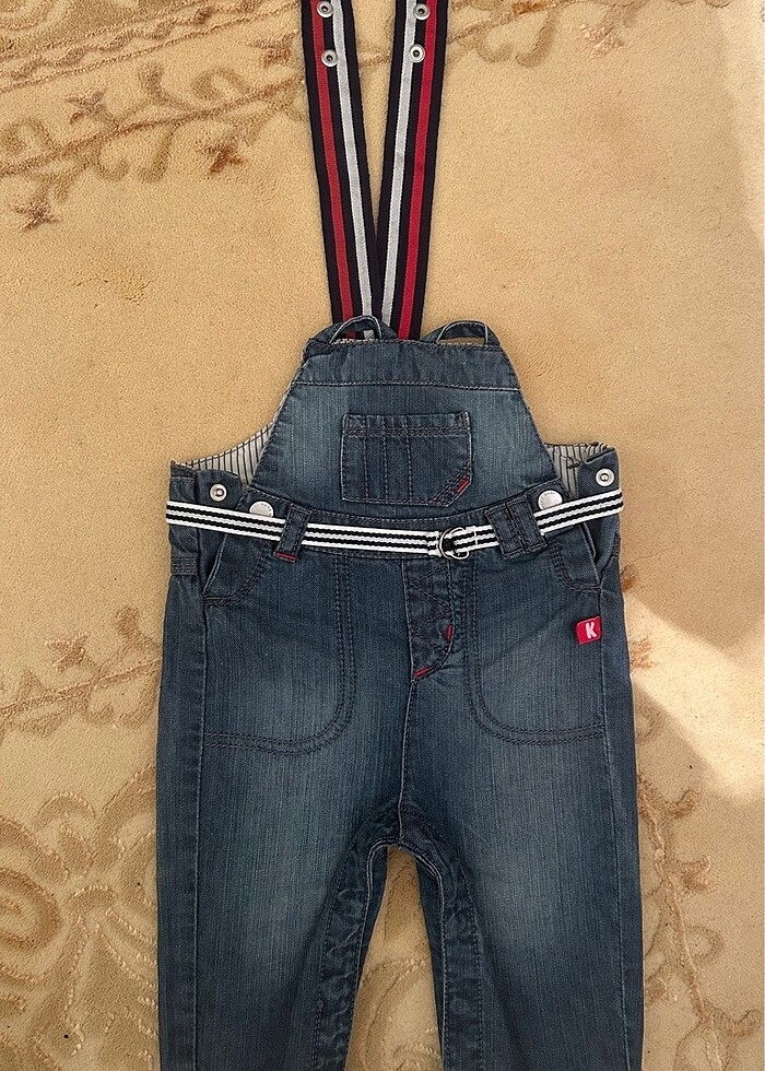 Ürün az kullanılmıştır. Kanz marka 6 aylık erkek bebek için jean salopet.