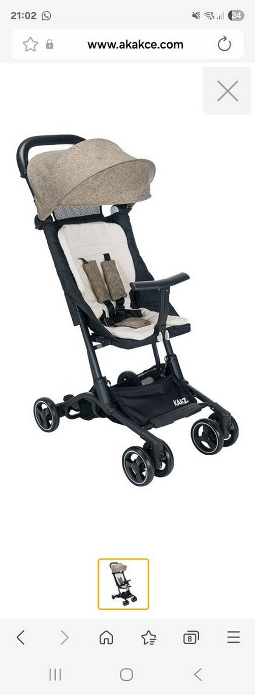 kanz s mini kabin bebek arabası inanılmaz hafif boyutu bi çanta kadar hiç yer kaplamıyor , çok iyi durumda isteyen için görsel eklenecek toplam 3 kg. 15 kg a kadar taşıyor yatma özelliği yok çok bebek arabamız oldugu için sadece avm gibi kapalı mekanlarda kullandık o yüzden tentesini falan çıkarmıştık tekrar takılacak .videolarına bakılabilir şehir dışı uçak yolculukları için ideal