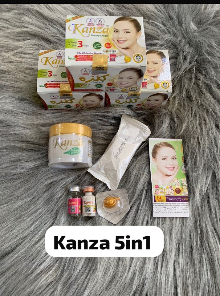 Kanza 5in1 kadın cilt bakım seti, cilt beyazlatma ve bakım için krem ve serumlar içerir. Birden fazla faydayı tek pakette sunar.