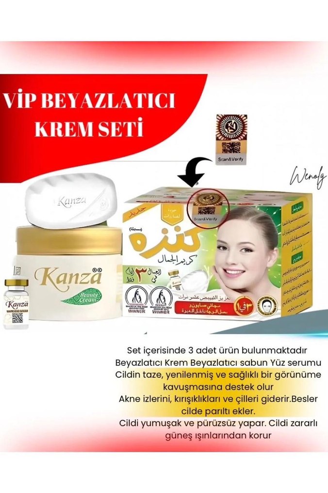 - Beyazlatıcı etkisiyle cildin doğal parlaklığını ortaya çıkarır ve lekelerle mücadele eder. - Krem formülü sayesinde cilde kolayca uygulanır ve hızlı emilir, böylece günlük kullanım için idealdir. - Tüm cilt tiplerine uygun formülüyle herkes tarafından güvenle kullanılabilir hassas ciltler dahil. - Leke karşıtı bakım özelliği ile cildinizdeki renk eşitsizliklerini azaltmaya yardımcı olurken aynı zamanda cildinizin doğal dengesini korur. - Leke karşıtı bakım sunan Kanza Beyazlatıcı Krem, cildinizdeki istenmeyen lekelerin görünümünü azaltmaya yardımcı olur. - Tüm cilt tiplerine uygun formülüyle herkesin kullanımına açık olan bu krem, geniş bir kullanıcı kitlesine hitap eder. - Kolajen içeriği sayesinde cildin elastikiyetini artırır ve yaşlanma belirtilerine karşı etkin bir koruma sağlar. - 50 ml hacmiyle pratik kullanım sunan bu set, günlük bakım rutininizin vazgeçilmez bir parçası haline gelir. - Sabun ve serumu içeren bu set, cildinize derinlemesine bakım yapar