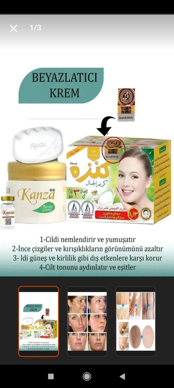 Kanza beyazlatıcı krem cildi nemlendirir, yumuşatır, ince çizgi ve kırışıklıkları azaltır, güneş ve kirliliğe karşı korur, cilt tonunu eşitler ve aydınlatır.