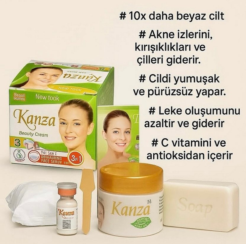 Kanza yüz kremi, C vitamini antioksidan içeriğiyle akne izlerini, kırışıklıkları ve lekeleri azaltır, cildi yumuşak ve daha beyaz yapar.