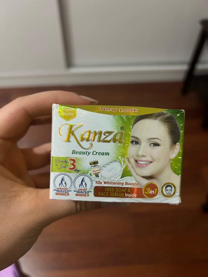 Kanza Güzellik Kremi, beyazlatıcı etkili 3'ü 1 arada formül, ücretsiz sabun ve yüz serumu ile cilt bakımını destekler. Sıfır ürün etiketli hediye geldi benim cildimde leke yok bu yüzden satıyorum