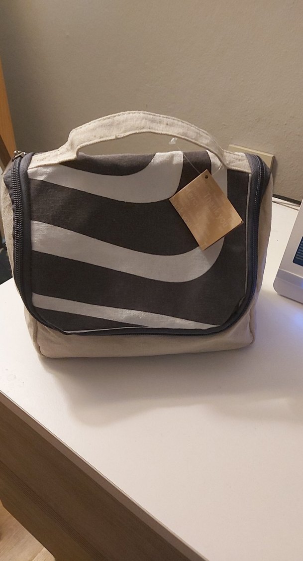 kapağı zebra desenli diğer kısmı bej renkte kadın makyaj Çantası Modern sokak stilini yansıtan şık ve trend görünüme sahiptir. kullanılmadı sorunsuz