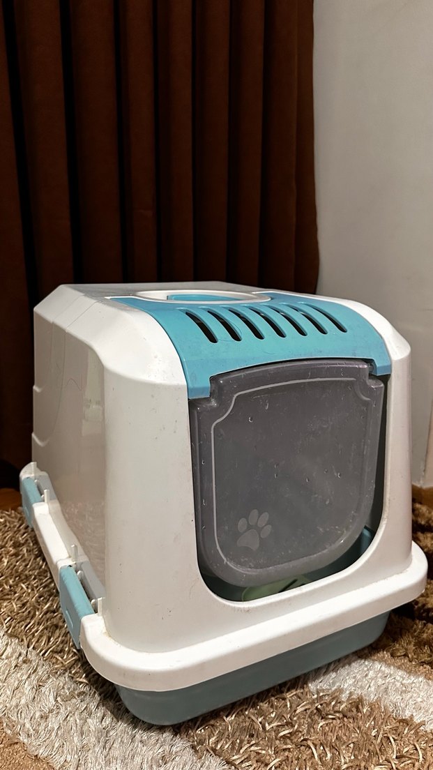 Kapaklı Beyaz ve Mavi Kedi Tuvalet Kabı