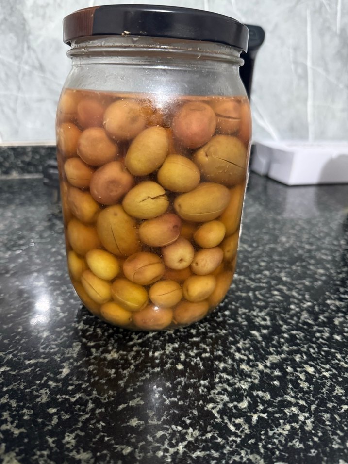 Siyah kapaklı cam kavanozda zeytin ve organik bal