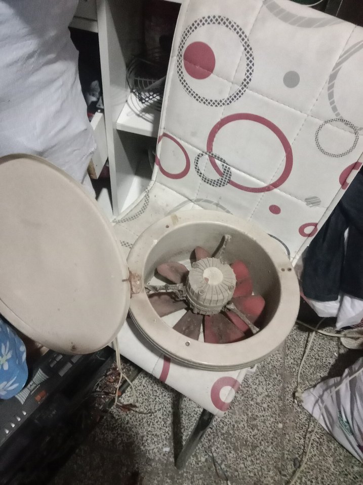 25 cm çapında, kapaklı elektrikli fan. Soğutma ve havalandırma için kullanılır. Dış kısmı gri ve beyaz, içinde kırmızı kanatlar bulunur.