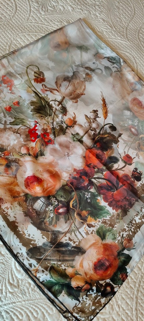Kapalı Çarşıdan aldığım ipek saten, deseni şahane, tablo gibi, büyük ebatlı ❤Yeni. Görsellerinden de güzel. 105*105 ebatlarında. İşaretlenen marka temsili