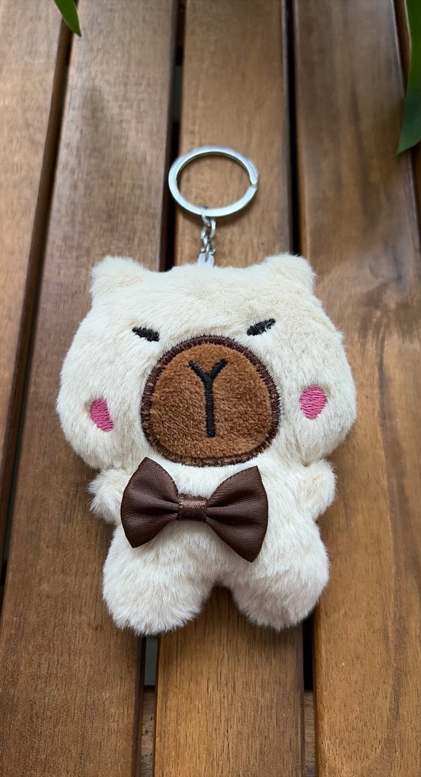 Yumuşak kahverengi peluş kapibara anahtarlık.