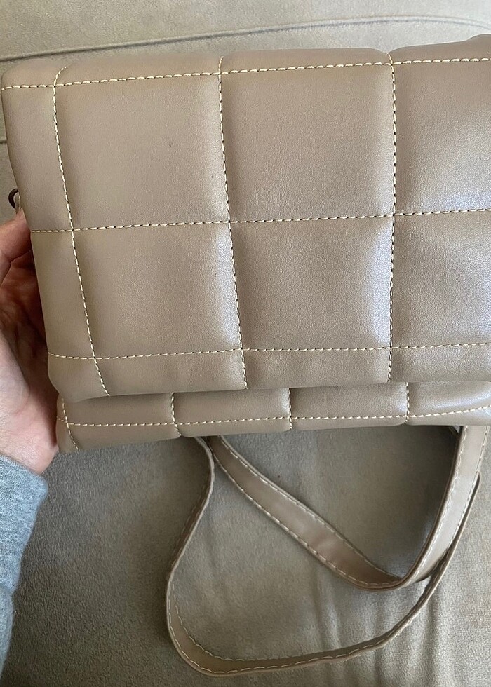 Ürün hiç kullanılmamıştır, hiçbir deforme yoktur. Temizdir. Uzun askısı vardır.