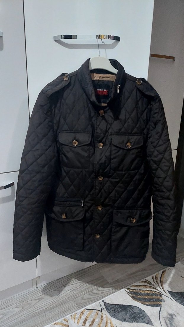Düğmeli, koyu kahve unısex ceket, notalı yaka ve uzun kolludur. Normal boyda ve rahat kesimdir, günlük ve sokak stiline uygundur.