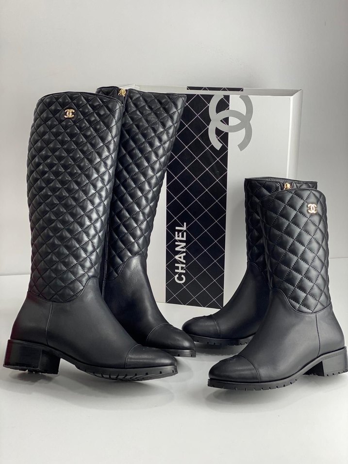 Kapitone Deri Dizüstü Chanel Çizme