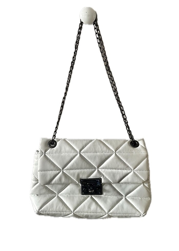 Kadın Kapitone Deri Görünümlü Zincir Askılı Çanta Beyaz metal tokalı kapama iki bölmelidir. Az kullanılmıştır.
