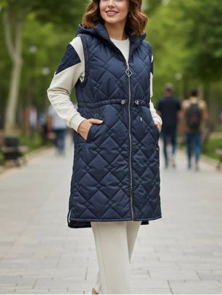 Kapitone.,fermuarlı ve ayarlanabilir kemerli kapitone yelekli takım rahat ve şık günlük kullanım için uygundur.