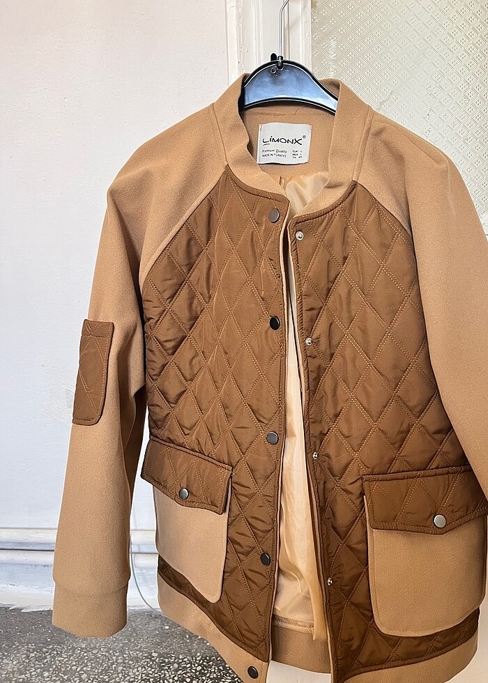 Mevsimlik içi astarlı mont. L beden ama M bedene de olur. Oversize kalıp hiç giyilmedi