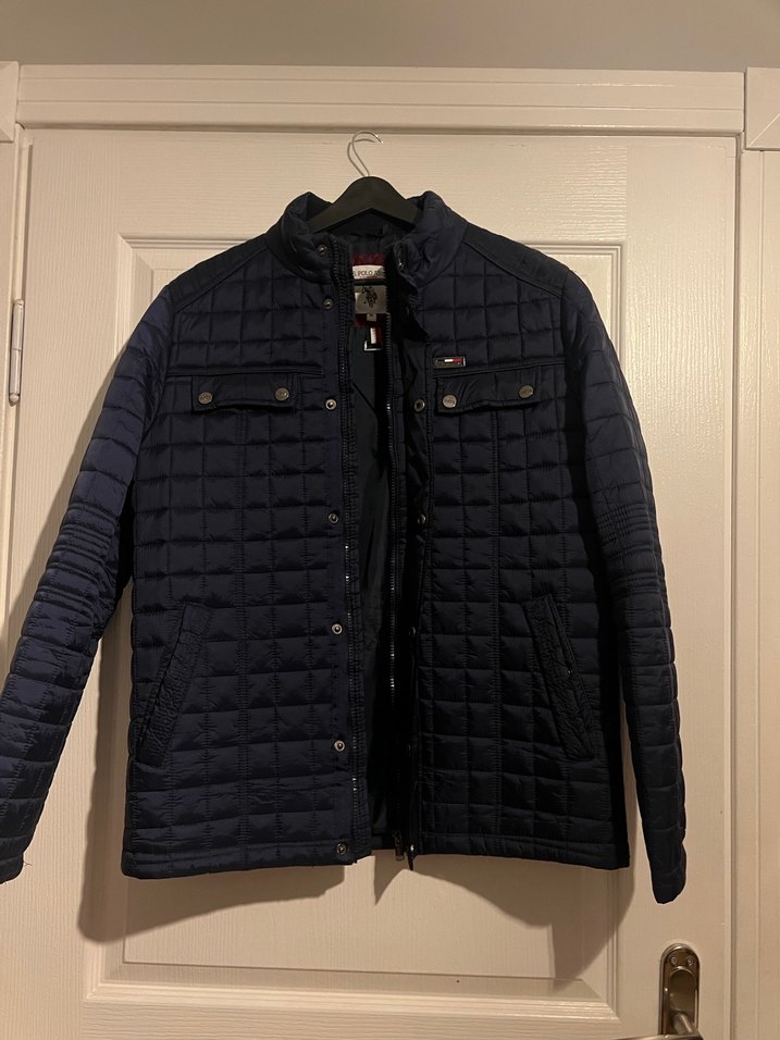 Düğmeli önü, kesik yaka ve uzun kollu erkek lacivert mont. Regular fit ve kapitone tasarımı, rahat günlük mont. Kadın/Erkek.. Unisex 36-44 beden arası. M-L