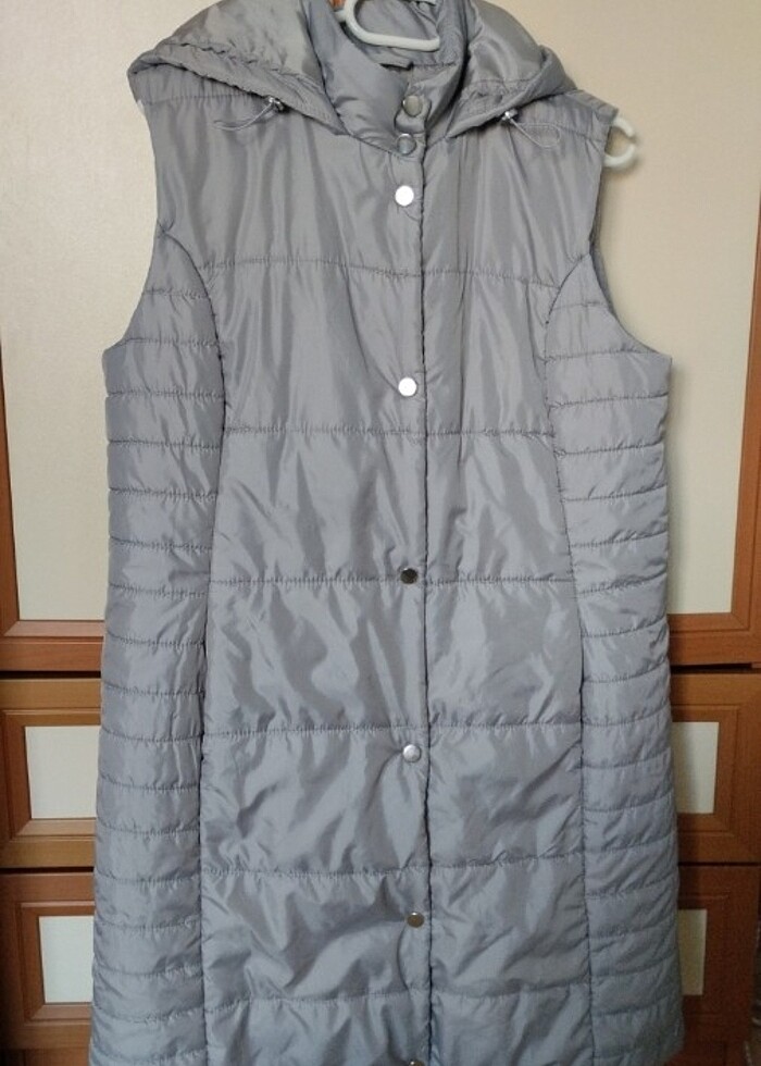 Göğüs 52 cm, omuzdan uzunluğu 90 cm yepyeni max 2 kere giyildi gri şişme yelek. çok kalın değil mevsimlik