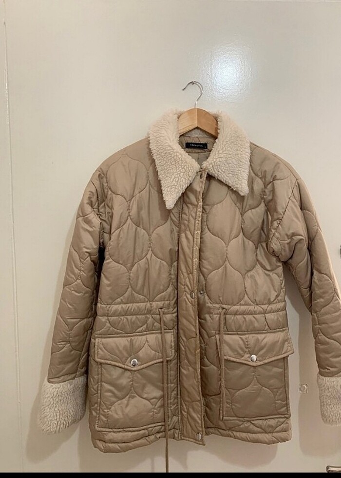 Kapitoneli. Xs beden fakat S bedene de uygundur. Bel kısmındaki bağcık detayı ile bele tam oturur. Çok şık, inditex muadili mont kaban. Zara muadili
