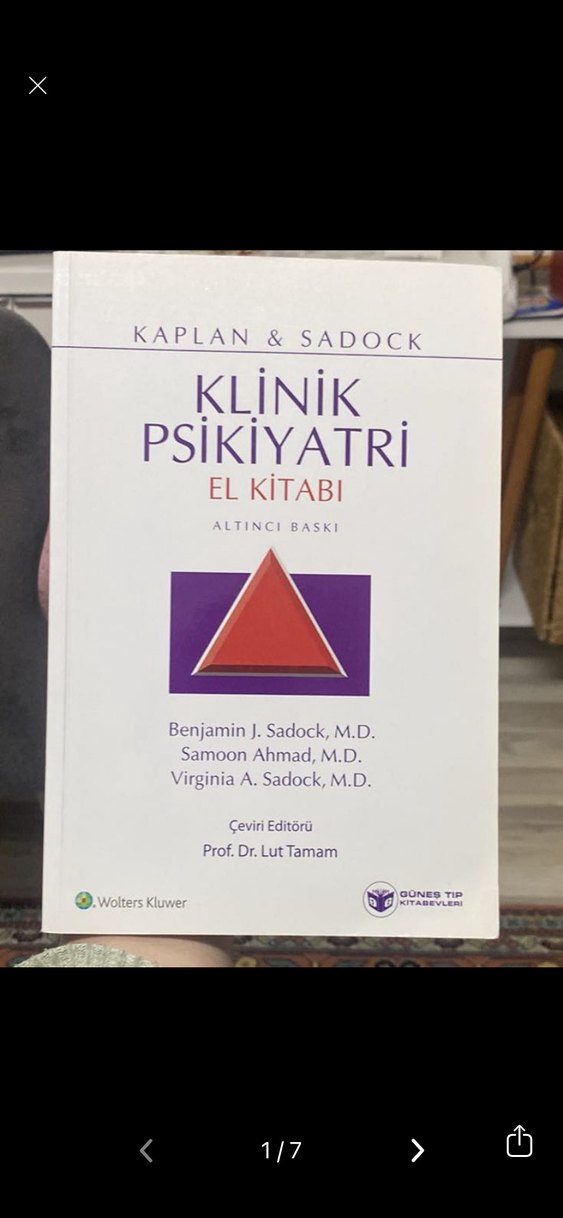 Kaplan & Sadock'un Klinik Psikiyatri El Kitabı, Prof. Dr. Lut Tamam editörlüğünde kapsamlı psikiyatri bilgisi sunar. Kitap neredeyse kusursuzdur, yeni gibidir. Sayfalarda kalemle işaretleme veya leke yoktur. Mevcut kitap 6. Basımdır. Kitabın 7. Basımı 2.250 TL’ye satılmaktadır.